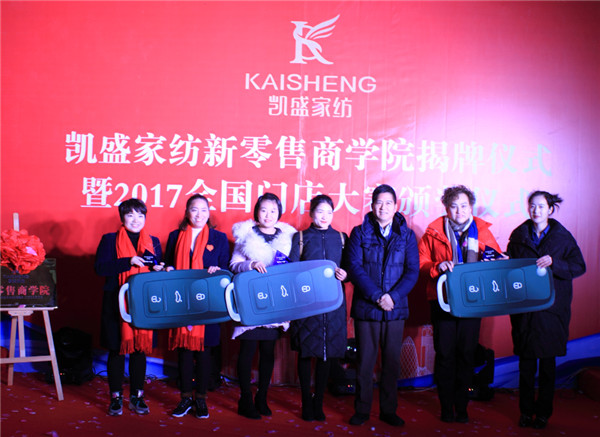 1月8日晚,凯盛家纺“2017全国门店大赛”颁奖典礼在凯盛总部隆重召开。门店PK大赛是一项行业盛事,覆盖面广、影响力强。为激励着终端门店的形象提升、基础规范提升、销售提升,不断的创新和发展,使得赛事一直保持活力演绎。赛事奖金除每月万元奖金、奖品之外,更是在年度决赛中大手笔奖出三部汽车。奖金总额高达50万元,单项奖金10万元,奖项、奖金均为行业之最。